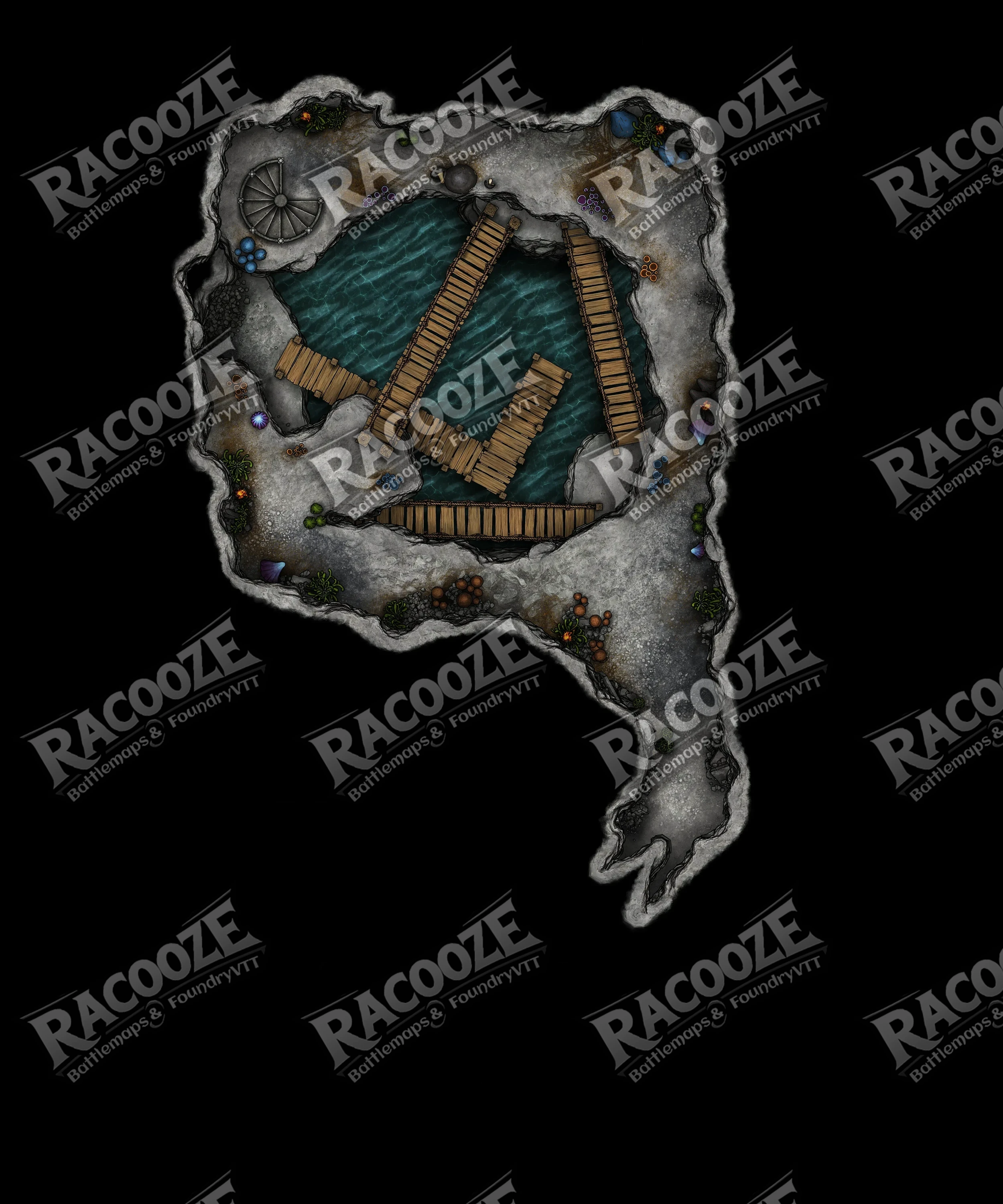 In the caverns the drip of water echoes, wooden walkways tremble over deep subterranean rivers, and torchlight casts dancing shadows on stone walls. Secret doors lead into the unknown, echoes of ancient promises ripple underfoot.