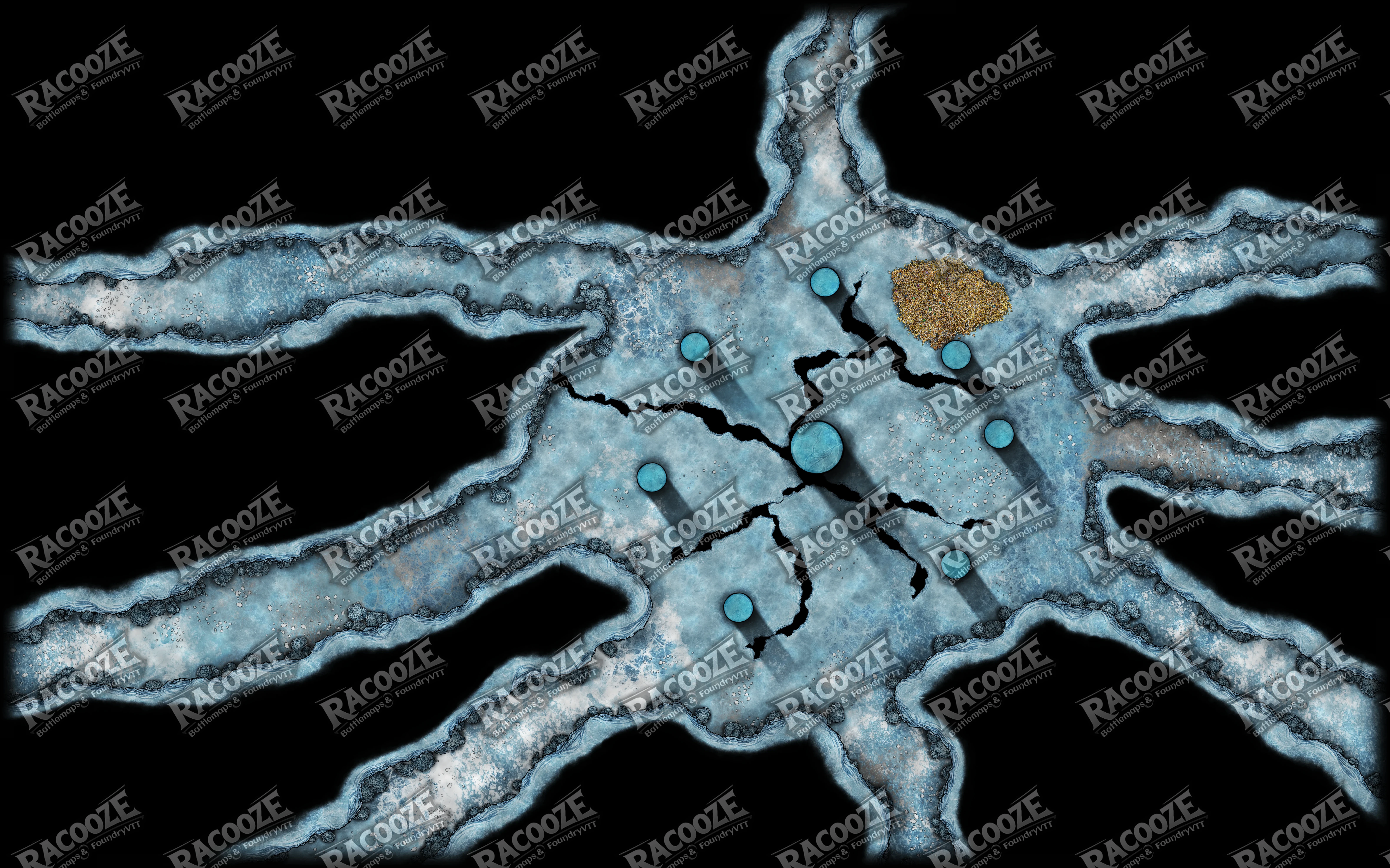 Beyond a narrow fissure in the ice lies a cavern reeking of cold metal and old death. The stone floor bears deep gouges from claws the size of spears, and the walls glisten with frost as if coated by a dragon’s breath. Broken weapons and scorched bones tell the tale of countless failed heroes who sought the beast’s hoard.Now, the hoard itself lies frozen within the glacier — a mound of gold, relics, and cursed wonders locked beneath a shimmering sheet of ice. The dragon that claimed it may yet sleep nearby, its heart beating slow as thunder under the frozen earth.