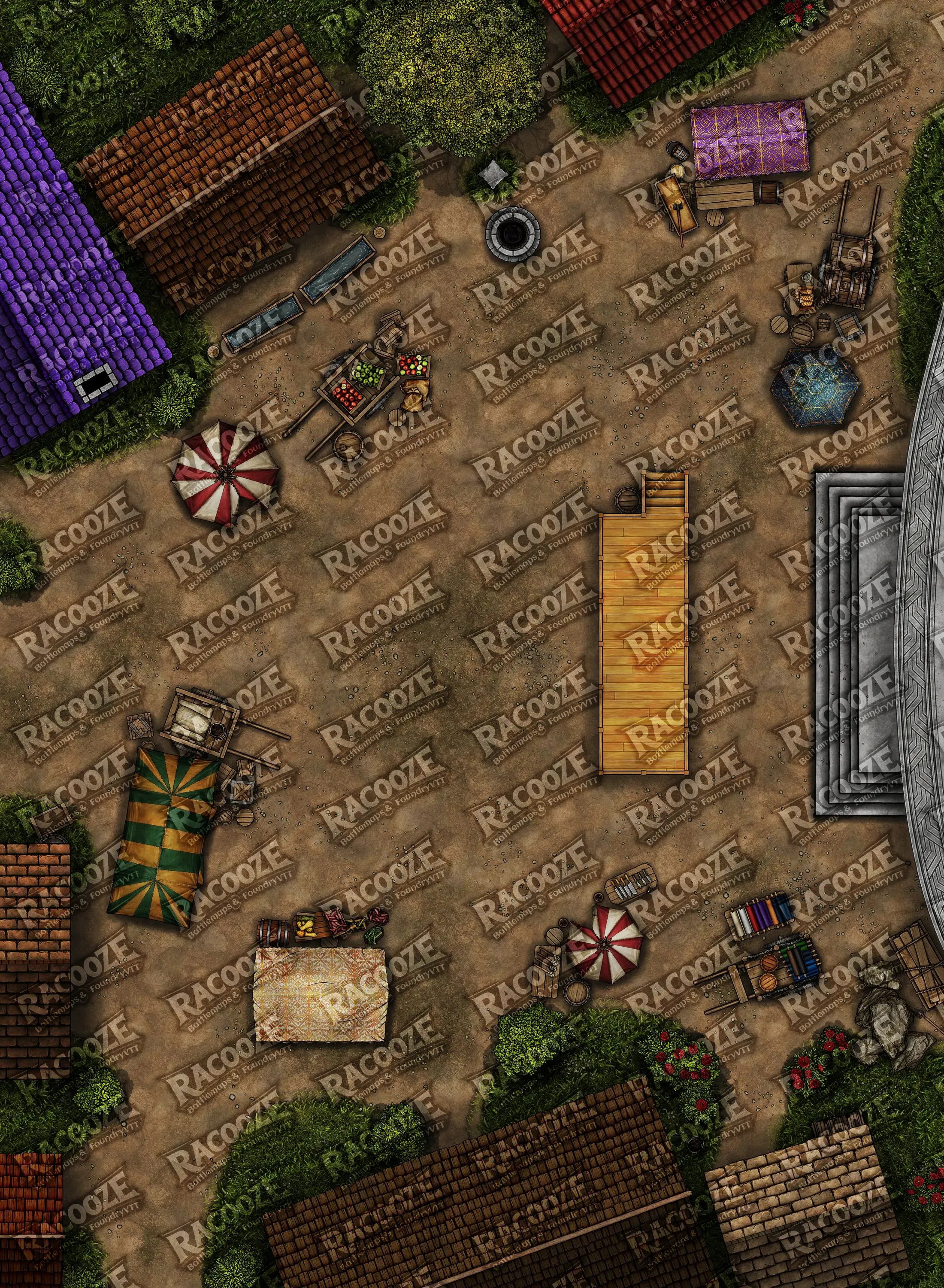 Colorful banners flutter in the breeze, strung between well-worn timber buildings that line the cobbled streets. Stalls overflow with fresh harvests, baked goods, and handcrafted wares, while townsfolk gather in laughter and song. Children chase one another between festival games, and performers fill the air with music and merriment. At the center, a grand stage stands ready for speeches, blessings, and ceremonies that mark the day of hope.